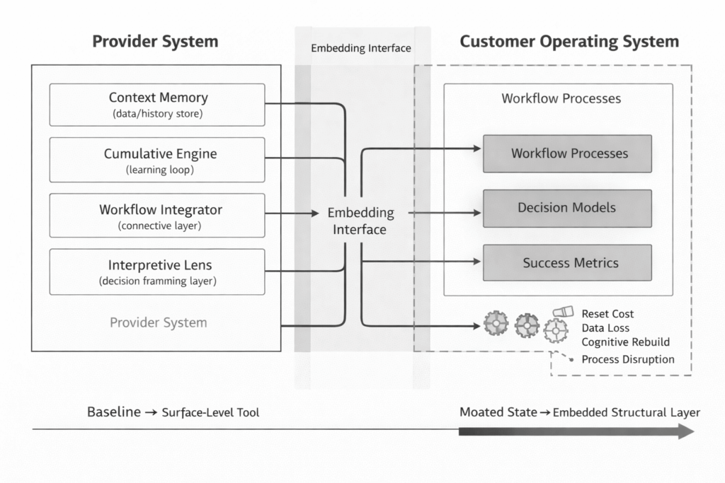 A Dependency Moat forms when your offering becomes tightly coupled to the customer’s success. Not as a tool they use—but as a capability they rely on. This happens when you deliver something that is: