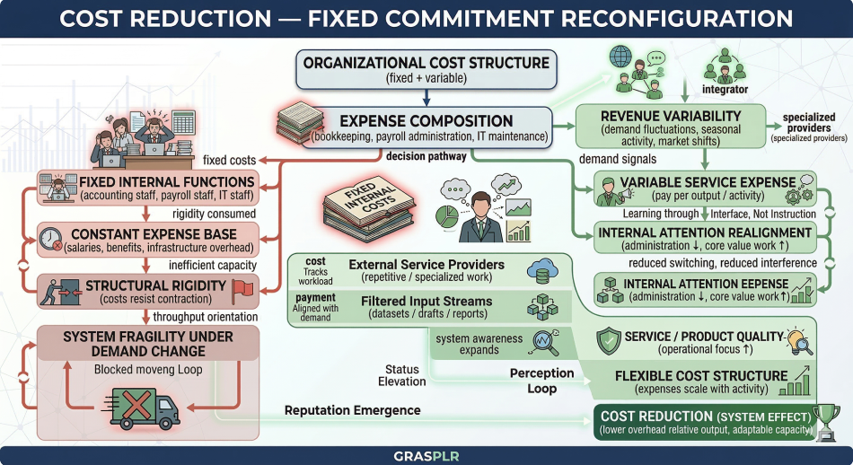 Cost reduction is often framed as a matter of restraint: spending less, cutting back, tightening control. Yet when organizations successfully reduce costs without degrading performance, the change usually comes from reconfiguration rather than reduction.